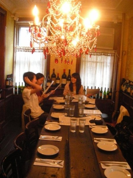 我們得到的高級PartyRoom!!! 實心木和水晶吊燈的組合讓人覺得高貴又奢華. 不過我說老闆啊...你後面放那麼多空酒瓶真的很容易讓我這個"粗魯堆"不經意的讓他開始骨牌效應耶!
